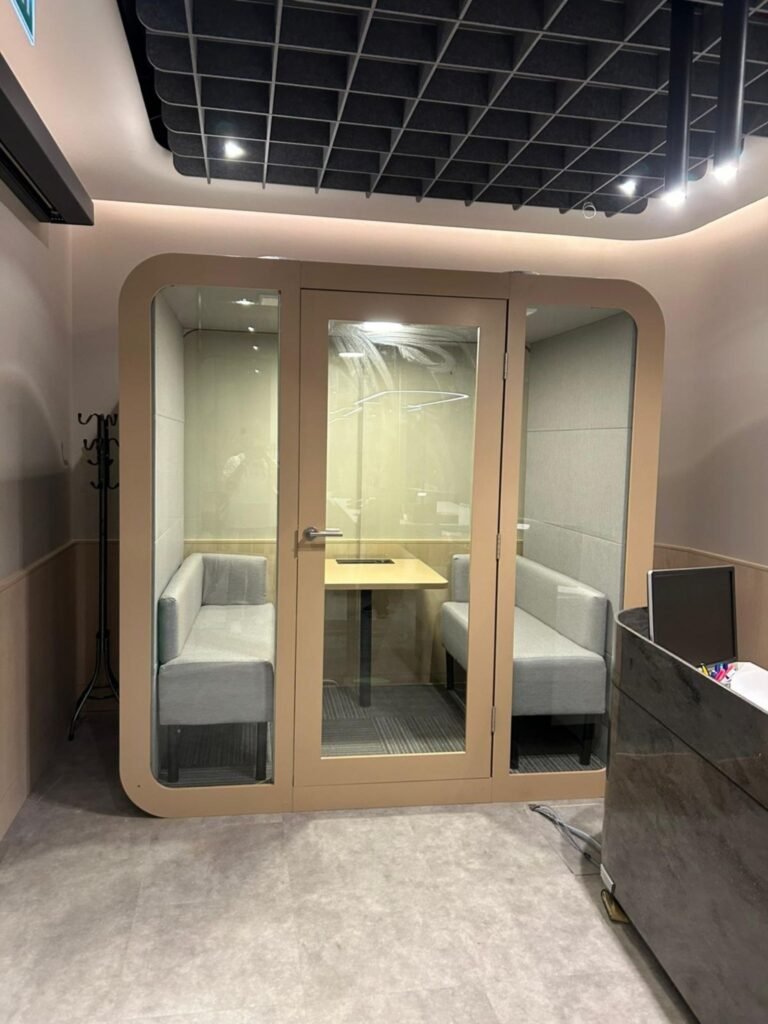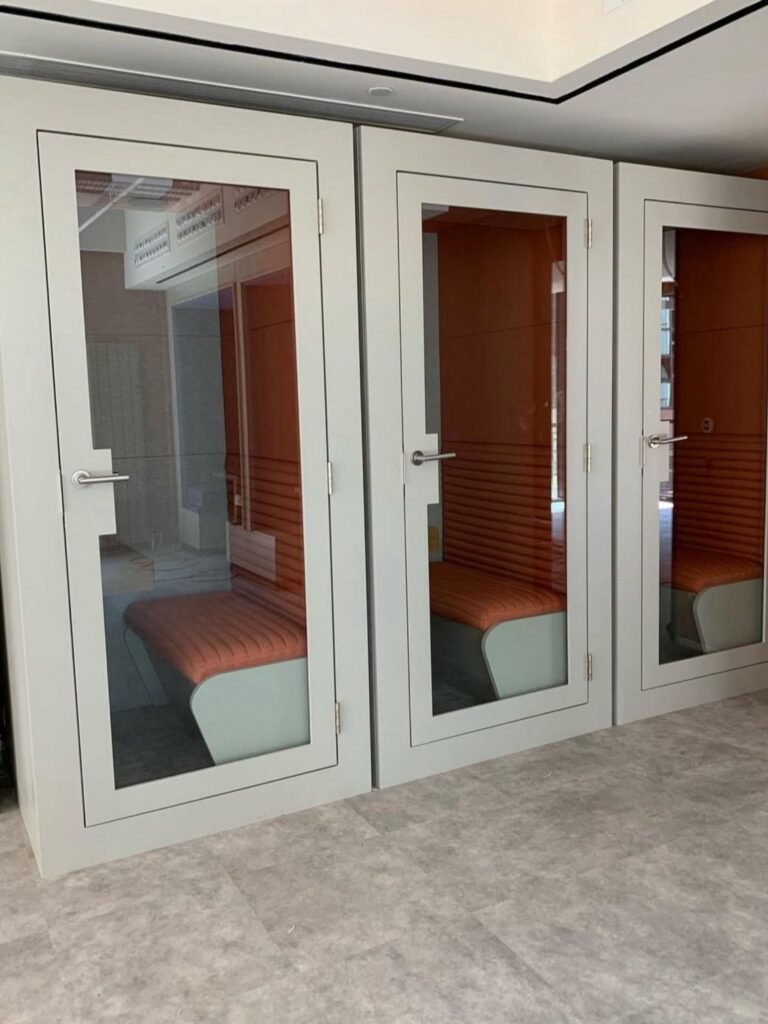 Farklı boyut, renk ve malzeme seçenekleriyle, hem estetik hem de fonksiyonel akustik kabinler üretiyoruz. Ofis, stüdyo, toplantı odası gibi her ortam için ölçünüze uygun tasarım sağlıyoruz.