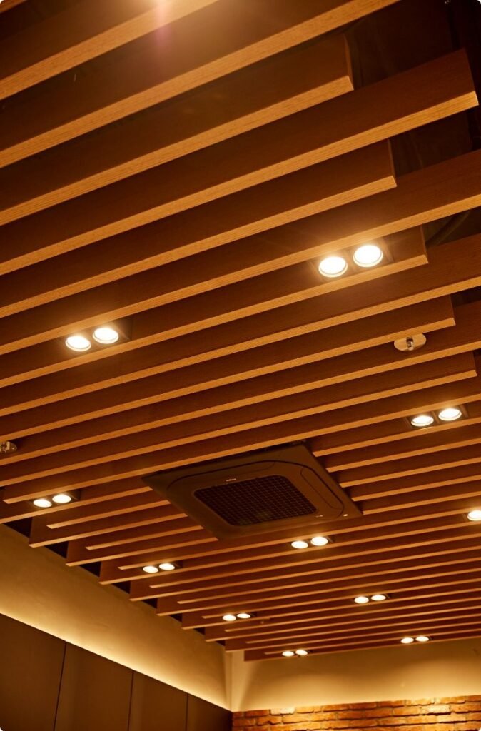Akustik Ahşap Tavan Baffle Uygulaması