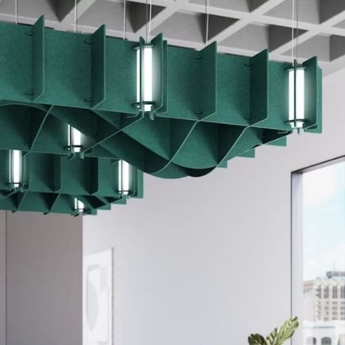 Akustik keçe yüzer tavan, geri dönüştürülmüş PET ambalajlardan elde edilen polyester liflerin yüksek teknolojiyle işlenmesi sonucu üretilen, ekolojik ve dekoratif bir ses düzenleme çözümüdür. Geleneksel ağır asma tavan sistemlerine modern bir alternatif olarak geliştirilen bu paneller, tavan yüzeyinden bağımsız şekilde, havada asılı duran “bulutlar” gibi uygulanır. Özellikle yankı sorunu yaşanan açık ofisler, modern kafeler, kütüphaneler ve sosyal alanlarda tercih edilen bu sistemler, ses dalgalarını lifli yapısında hapsederken mekana endüstriyel ve minimalist bir tasarım dili kazandırır.