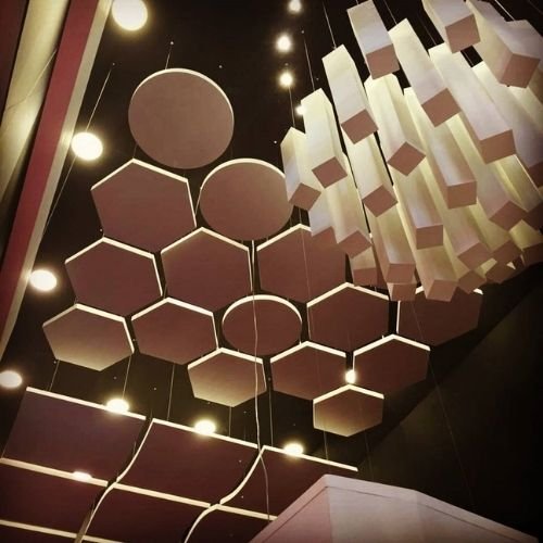 Bu panellerin en dikkat çekici özelliği, yüksek yoğunluklu akustik keçe veya kumaş kaplı cam yünü gibi materyallerden üretilerek geniş bir frekans aralığında üstün ses yutma performansı sergilemesidir. Altıgen akustik tavan panelleri, modüler yapıları sayesinde farklı renk ve kalınlıklarda kombinlenerek tavanda üç boyutlu bir görsel şölen sunabilir. Yangın güvenliği standartlarına uygun alev geciktirici özellikleri ile donatılan bu ürünler, neme karşı dirençli yapıları sayesinde zamanla sarkma, açılma veya form kaybı yaşamazlar. Hafif yapıları montaj yükünü azaltırken, keskin ve düzenli hatları sesin tavan yüzeyinde daha stratejik bir şekilde kırılmasını ve sönümlenmesini sağlar.
