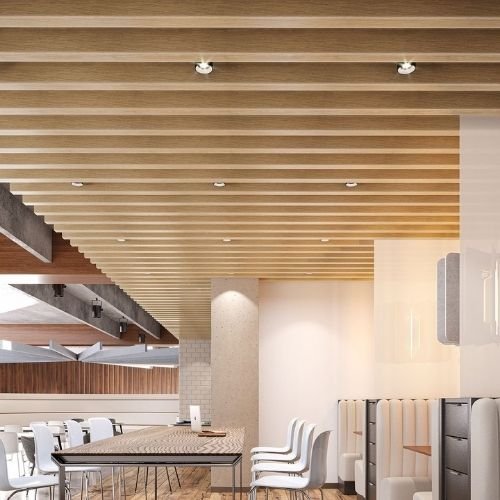 Baffle akustik yüzer tavan panelleri, panel aralıkları ve yüzer konumlandırma sayesinde ses dalgalarının farklı yönlerde kırılmasını sağlayarak yankıyı etkin biçimde azaltır. Tavan yüzeyinde homojen bir akustik kontrol sunar ve yüksek hacimli alanlarda sesi boğmadan düzenler. Mimari tasarıma uyum sağlayan formu, mekâna modern ve hafif bir görünüm kazandırırken akustik performansı destekler. Dayanıklı yapısı uzun ömürlü kullanım sunar ve yoğun kullanılan alanlarda performansını korur. Hem dekoratif hem de fonksiyonel bir tavan çözümüdür.