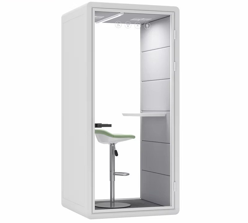 Telefon görüşme kabini, açık ofisler, çağrı merkezleri ve kalabalık alanlarda kullanıcıların rahat, sessiz ve izole bir ortamda telefon görüşmesi yapabilmeleri için tasarlanmış özel akustik kabinlerdir. Yüksek ses yalıtımı ve akustik düzenleme özellikleri sayesinde dış gürültüyü engeller, içerideki sesin dışarıya sızmasını önler. Kompakt yapısıyla az yer kaplar, taşınabilir özelliği ile farklı alanlarda kolayca konumlandırılabilir.