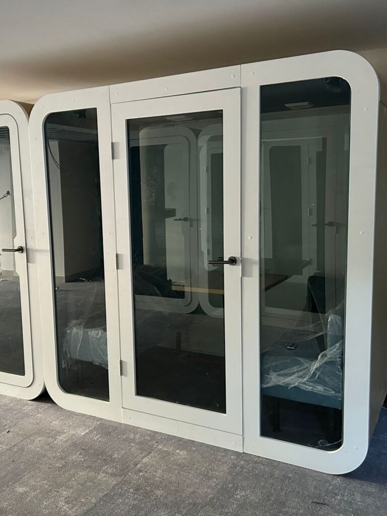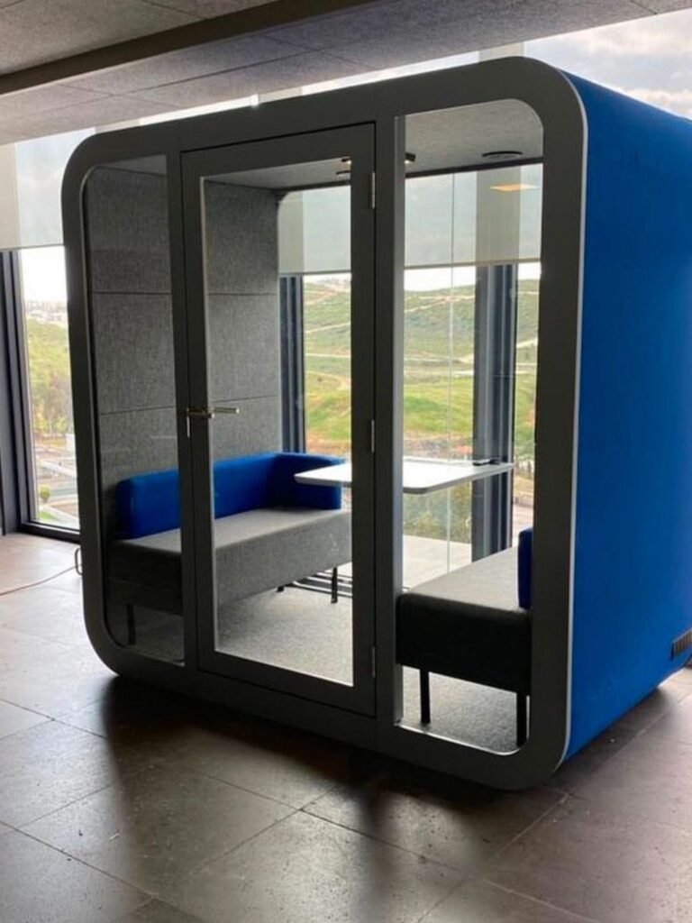 Toplantı kabini, ofis ve ortak çalışma alanlarında, küçük grupların sessiz ve izole bir ortamda toplantı yapabilmeleri için tasarlanmış akustik kabin sistemleridir. Dış gürültüyü engelleyen, içerideki sesin dışarıya çıkmasını önleyen yapısı sayesinde gizlilik ve net iletişim sağlar. Farklı kişi kapasitesine göre (2, 4 veya 6 kişilik) üretilebilen toplantı kabinleri, modern ofislerde hem fonksiyonel hem de estetik bir çözüm sunar.